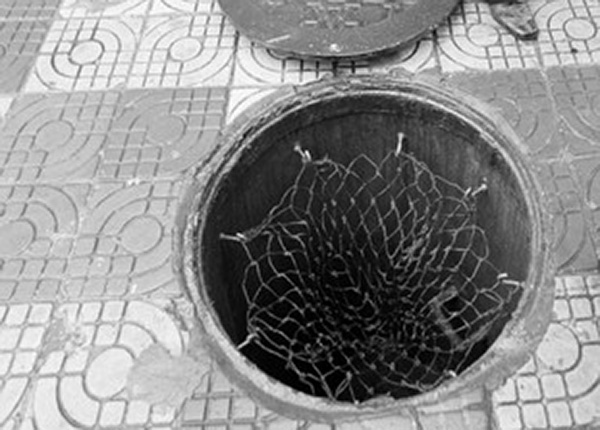 通讯井盖防坠网、井盖防护安全网、耐腐蚀防坠网,井盖防护网,窨井防坠网,井盖安全网,井盖防坠网,井盖防坠落安全网,地下井防护网、井盖网,井盖防护网,窨井防坠网,市政井防护网防坠网、电力井防护网防坠网、通讯井防护网防坠网、自来水井防护网防坠网、检查井防护网防坠网、燃气井防护网防坠网污水井防护网防坠网井盖防护网下水道窨井防坠安全网,窨井安全防护网,地下井防护网,窨井盖网,井盖网,下水道口安全网,地下井安全网 防坠网,城市下水道井盖下放不锈钢安全网兜,下水道安全网,下水道防坠安全网,窨井网,下水道盖网,沙井防护网,窨井防护网,圆形阴井盖网、窨井防坠网、窨井防坠网、下水道安全网、下水道安全网、窨井盖安全网、窨井盖安全网、窨井防护网、窨井防护网。窨井防护网是由不锈钢,涤纶/维纶/锦纶或聚乙烯网线制作而成,包括安全防护网,其特征在于其中固定于地下井盖下方的不锈钢的膨胀挂钩,所述安全防护网外侧边沿设置有与膨胀挂钩相适配的挂环,膨胀挂钩由紧固螺杆、套装于紧固螺杆上的紧固栓,和紧固螺母,以及设置于紧固螺杆两端的限位凸起和固定挂钩组成。窨井防护网可起支撑作用,窨井防护网在安装后不会松动、脱落,起到支撑作用,防止行人掉入造成伤亡。地下井防护网具有以下特点:防断裂强度高、抗老化、耐腐蚀、安全可靠、安装方便等,井下可正常使用5-10年。防止掉入造成伤亡。