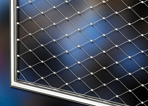 不锈钢绳网(扶杆围栏网)(扶杆防护网)(扶杆软网)(扶杆柔性网)是由不锈钢丝绳上下绞织与钢套挤压而成,钢丝绳直径有1.0、1.5、2.0、3.0mm,钢丝绳结构有7*7、7*19、1*19等,材质有304、304L、316、316L,其次我们还可以提供热镀锌钢丝绳网产品。钢套材质主要采用不锈钢套,其它还有铝套、铜套、铜镀锡套以供客户选择。