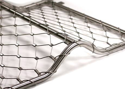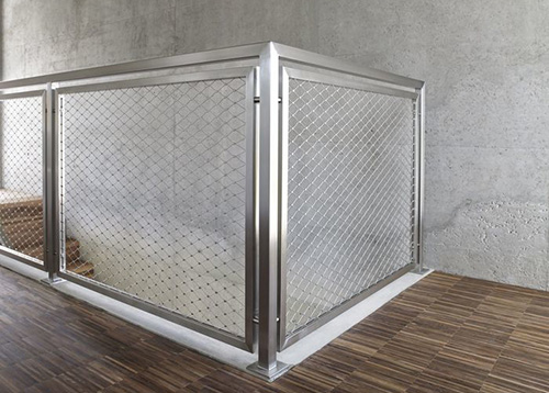 不锈钢绳网(扶杆围栏网)(扶杆防护网)(扶杆软网)(扶杆柔性网)是由不锈钢丝绳上下绞织与钢套挤压而成,钢丝绳直径有1.0、1.5、2.0、3.0mm,钢丝绳结构有7*7、7*19、1*19等,材质有304、304L、316、316L,其次我们还可以提供热镀锌钢丝绳网产品。钢套材质主要采用不锈钢套,其它还有铝套、铜套、铜镀锡套以供客户选择。不锈钢钢丝绳网,采用优质的不锈钢304、不锈钢316材质的钢丝绳编织而成,宽度长度可以根据客户要求定做,网孔需要根据使用场所和要求的具体情况而定。不锈钢绳网是采用304/316不锈钢绳编织而成,具有很强的防腐蚀能力,每根不锈钢丝绳由多股钢丝拧编,牢固性好抗拉力大。动物可以任意攀爬、拉拽,而且不会对动物有任何伤害。 产品主要应用于扶杆防护、楼梯防护、各种扶杆的安装等。