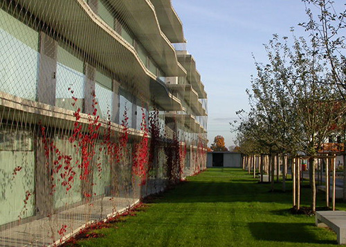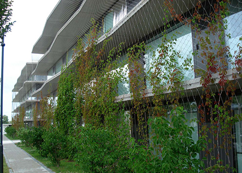 绿植攀爬绳网广泛用于攀爬植物的定型生长,因为材质采用优质不锈钢,适合长时间使用,使用年限达30年之久。特别适合各种恶劣环境的使用。植物攀爬网具耐磨,抗腐蚀,韧性大,不易破损,寿命长等特点。不锈钢植物攀爬网是由不锈钢绳上下绞织与钢套挤压而成,产品主要应用于幕墙、安全防护、护栏、隔离网、建筑围栏、外墙装饰等。适应于各种不同的建筑的外墙、楼顶、中镂空等位置。