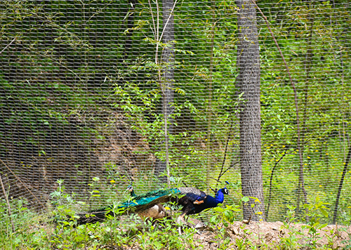 孔雀新家,动物围网,采用不锈钢绳网为主要原材料建造。用不锈钢绳网搭建的动物围网,孔雀的新家,样式新颖、坚固耐用、通透性强不影响观赏者视野,是新一代动物围网、动物笼舍理想的应用材料。孔雀被视为”百鸟之王”,是最美丽的观赏鸟。是吉祥、善良、美丽、华贵的象征。有特殊的观赏价值,羽毛用来制作各种工艺品。不锈钢绳网给孔雀构建了一个好的生活环境。我们知道,能够自然开屏的只能是雄孔雀,孔雀中以雄性较美丽,而雌性却其貌不扬。孔雀开屏也是为了保护自己。在孔雀的大尾屏上,我们可以看到五色金翠线纹,其中散布着许多近似圆形的“眼状斑”,这种斑纹从内至外是由紫、蓝、褐、黄、红等颜色组成的。一旦遇到敌人而又来不及逃避时,孔雀便突然开屏,然后抖动它“沙沙”作响,很多的眼状斑随之乱动起来,敌人畏惧于这种“多眼怪兽”,也就不敢贸然前进了。每年春季,尤其是三
