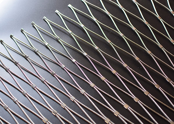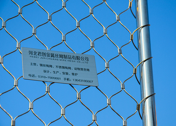 不锈钢丝绳网有适合不同动物品种的各种规格不锈钢丝绳网,材质为304、304L、316、316L,结构为7x7绳、7x19绳,绳径为1.2mm, 1.6mm, 2.0mm, 2.4mm, 3.2mm,孔径为:20mm x 20mm, 30mm x 30mm, 40mm x 40mm, 50mm x 50mm,60mm x 60mm, 76mm x 76mm, 90mm x 90mm, 102mm x 102mm, 120mm x 120mm等。材质为304、304L、316L,结构是7×7、7×19等。不锈钢丝绳网属一次性投入,永久性使用,中间不需要任何维修,其综合经济效益是其它丝网产品所不能比拟的。不锈钢绳网应用于鸟语林护网、动物笼舍、园林装饰、体育场馆、养殖捕捞等。不锈钢绳网不锈蚀、耐柔软性好、耐疲劳、耐冲击破断力大,整体结构坚固耐用,外观豪华、形式新颖,其本身是一大景观。我公司技术人员还可现场勘察、设计,根据用户要求,提出所用材质、绳径、孔距及整体结构意见。