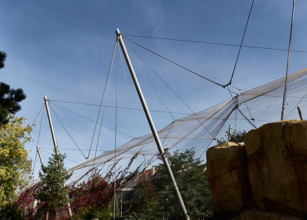 柔性电缆网也可以叫做不锈钢编织网、不锈钢绳网、动物园围网等。它的特性之前已经描述的特别多。不生锈、耐腐蚀、透视性好、柔软坚韧。今天就不再重复这些。动物通道网是一种新型的设计,在现代的动物园中非常流行。它最开始是应用于猴子等灵长动物类,后来又延伸到猫科动物及其他动物。动物通道网利用柔性电缆网的特性,以不锈钢框架作为支撑,将柔性网设计成圆筒或者其他形状的通道,为动物的活动区域及娱乐性提供了极大的延伸。树冠状鸟舍网是一种大型的鸟园或鸟语林网,它大致呈树冠状或者伞状。中间一根或者几根支柱将柔性电缆网支撑起来,周围和围墙或围栏连接固定,形成巨大的步入式鸟舍。大型鸟舍网不仅利用柔性网的柔软特性,而且还利用了柔性网的透光性和透气性,鸟舍内根本不影响采光、空气流通和雨水的情况。并且不锈钢编织网非常轻,才会容易被支撑起来。树冠状鸟舍网将人与动物的距离大大的拉近,游客可以置身于鸟语林中感受大自然的气息,这在国内外大型鸟园或者动物园都是非常常见的应用。